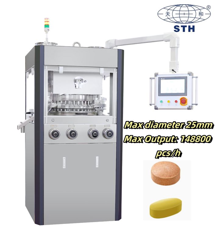 Deze machine is een automatische roterende tablettenpersmachine, geschikt voor industrieën zoals elektronica, voeding, chemie, farmaceutica, enz. Het is een professionele apparatuur die continu verschillende korrelige grondstoffen in tabletvorm perst. Deze machine heeft een breed scala aan toepassingen en is geschikt voor het persen van verschillende soorten tabletten, zoals medicijntabletten, melk tabletten, calciumtabletten, kamferballen en poedermetallurgieproducten.
